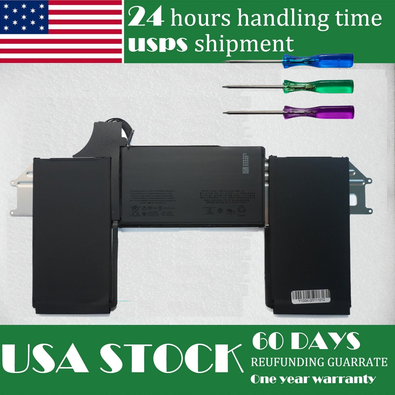 Genuine A1965 Replacement Battery for MacBook Air 13" Retina (2018-2020, Intel Models) | High-Performance 49.9Wh Li-Polymer Battery | 11.36V | Complete Installation Kit
